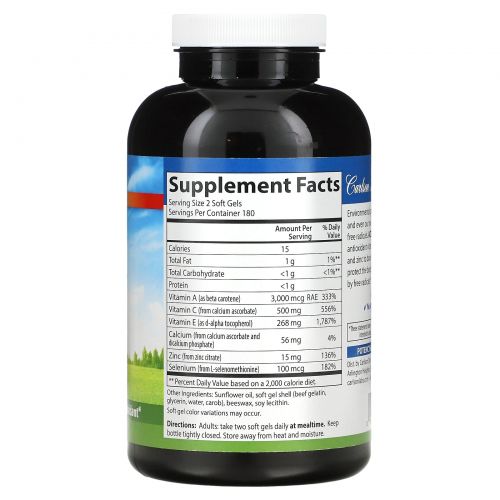 Описание товара Carlson Labs, Витамины АСЕ + Цинк, 360 Гелевых Капсул