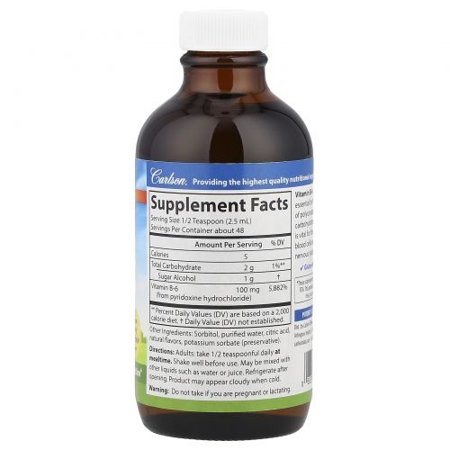 Описание товара Carlson Labs, Жидкий B-6, 4 жидких унций (120 мл)