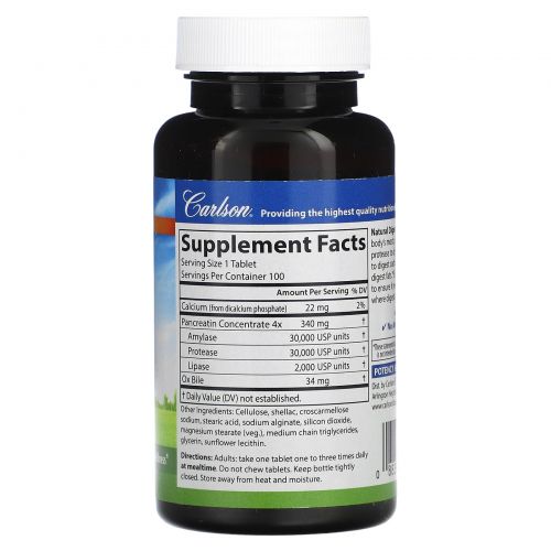 Описание товара Carlson, Натуральные пищеварительные ферменты, 100 таблеток