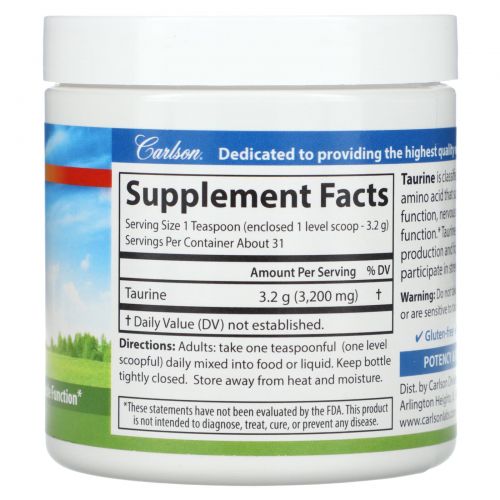 Описание товара Carlson, Taurine Powder, 3.53 oz (100 g)