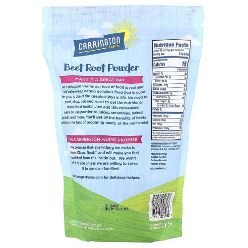 Описание товара Carrington Farms, Порошок из свеклы, 283 г (10 унций)