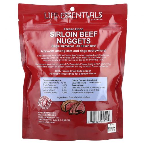 Описание товара Cat-Man-Doo, Life Essentials, сублимированные говяжьи наггетсы, для кошек и собак, 170 г (6 унций)