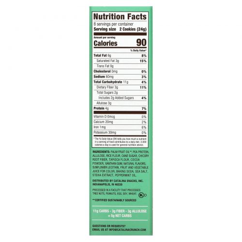 Описание товара Catalina Crunch, Keto Sandwich Cookies, Chocolate Mint, 16 Cookies, 6.8 oz (193 g)