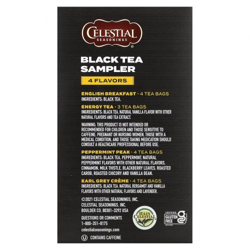 Описание товара Celestial Seasonings, черный чай, 4 вкуса, 15 чайных пакетиков, 31 г (1,1 унции)