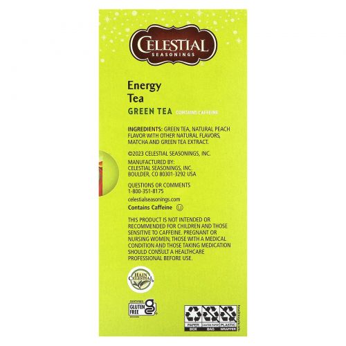 Описание товара Celestial Seasonings, Energy Tea, зеленый чай, 12 чайных пакетиков по 23 г (0,8 унции)