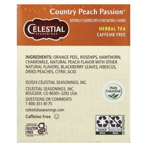Celestial Seasonings, Травяной чай, персиковый, без кофеина 20 чайных пакетиков, 1.4 унции (41 г)