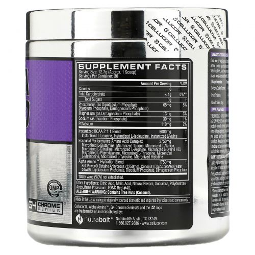 Описание товара Cellucor, Alpha Amino, аминокислоты с разветвлённой цепью для производительности, фруктовый пунш, 13,4 унц. (381 г)