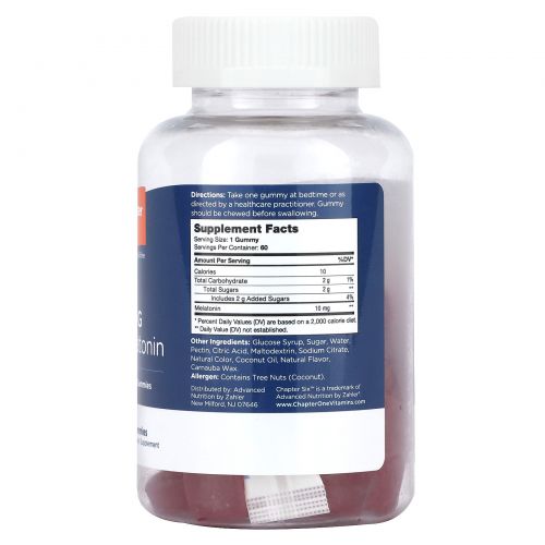Описание товара Chapter Six, Мелатонин, 10 мг, 60 жевательных таблеток
