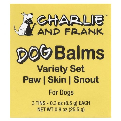 Описание товара Charlie and Frank, набор бальзамов для собак, для лап, кожи и носа, 3 баночки по 8,5 г (0,3 унции)