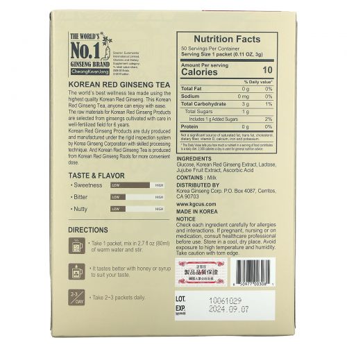 Описание товара Cheong Kwan Jang, чай из корейского красного женьшеня, 50 пакетиков, 3 г (0,105 унции) каждый