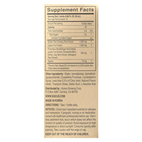 Описание товара Cheong Kwan Jang, Жизненный тоник с корейским красным женьшенем, 10 флаконов по 20 мл (0,68 жидк. унции)