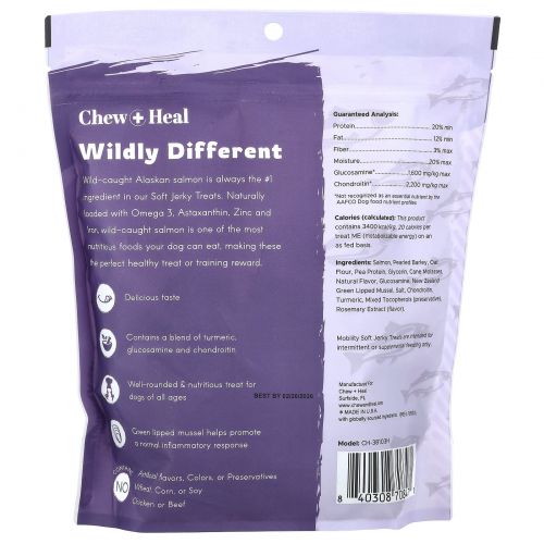 Описание товара Chew + Heal, Мягкое вяленое лакомство для собак, для всех возрастов, с лососем, 340 г (12 унций)