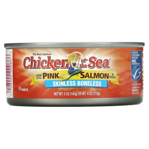 Описание товара Chicken of the Sea, Горбуша в воде с кусочками, без кожи / без костей, 4 пакетика по 142 г (5 унций)
