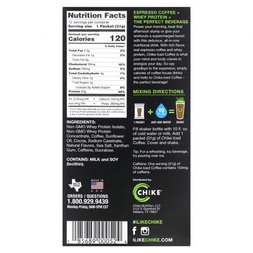 Описание товара Chike Nutrition, High Protein Iced Coffee, Mocha, 12 Packets, 1.09 oz (31 g) Each