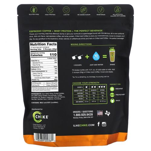 Описание товара Chike Nutrition, Холодный кофе с высоким содержанием протеина, тыквенные специи, 413 г (14,6 унции)