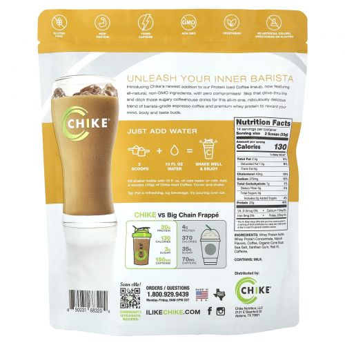 Представляем новейшее дополнение Chike к нашей линейке протеинового кофе со льдом, которое теперь содержит полностью натуральные ингредиенты без ГМО и без компромиссов! Пройдите без очереди и откажитесь от сладких кофейных напитков, чтобы насладиться невероятно вкусной смесью кофе эспрессо класса бариста и сывороточного протеина премиум-класса, чтобы вознаградить ваш разум, тело и вкусовые рецепторы.