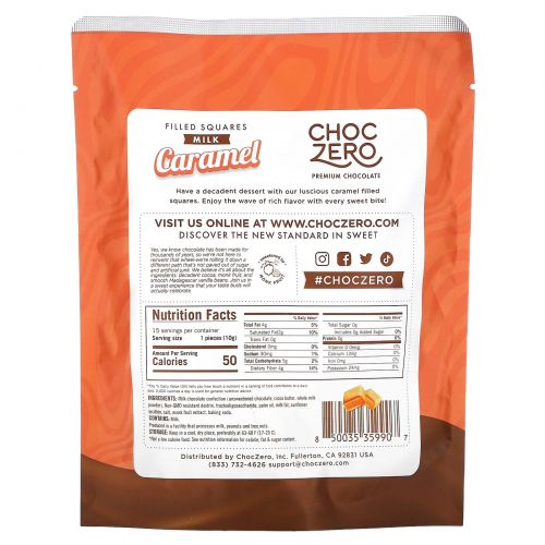 ChocZero, Filled Squares, молочная карамель, 15 батончиков в индивидуальной упаковке