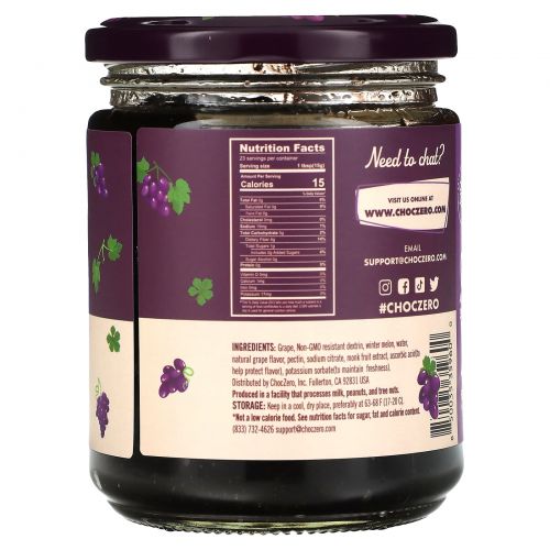 Описание товара ChocZero, виноградный джем, 340 г (12 унций)