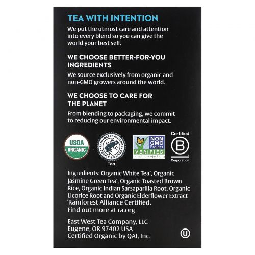 Другие ИнгредиентыОрганический белый чай, органический зеленый чай с жасмином, органический обжаренный коричневый рис, органический корень индийской сарсапариллы, органический корень солодки и органический экстракт бузины.