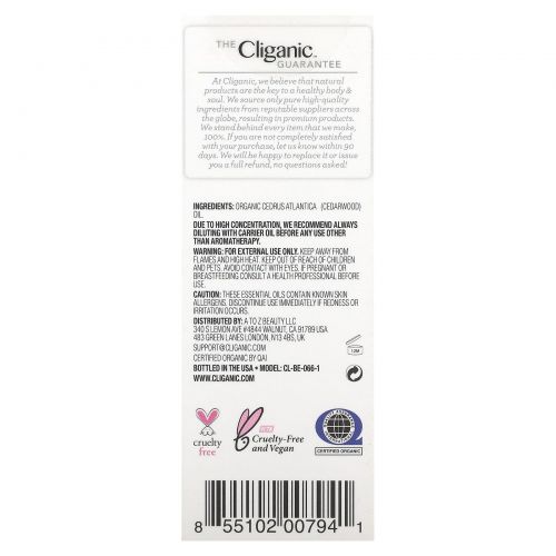 Описание товара Cliganic, 100% чистое эфирное масло, кедровое масло, 30 мл (1 жидк. Унция)