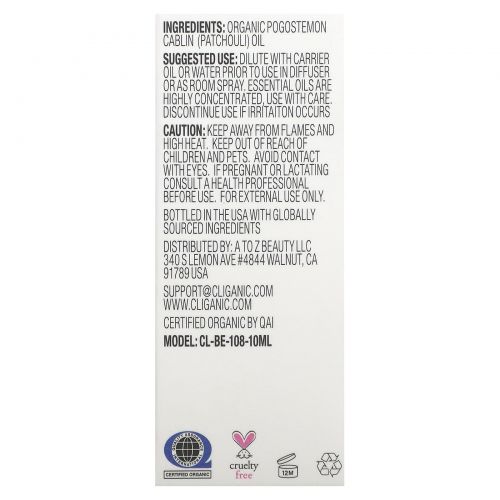 Описание товара Cliganic, 100% чистое эфирное масло, масло пачули, 10 мл (0,33 жидк. Унции)