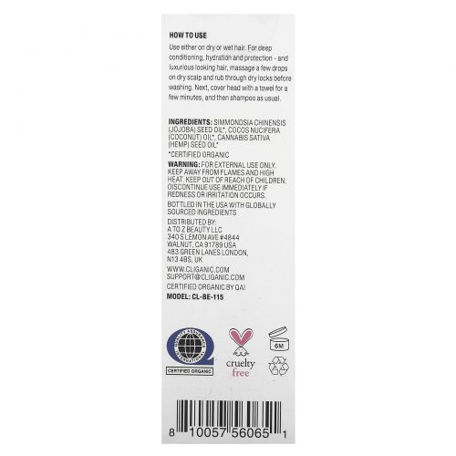 Описание товара Cliganic, 100% натуральная сыворотка для волос, 60 мл (2 жидк. Унции)