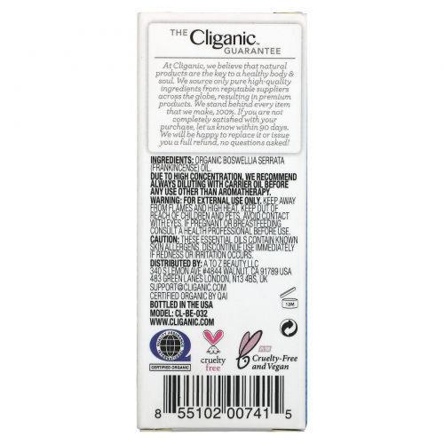 Описание товара Cliganic, на 100% чистое эфирное масло, ладан, 10 мл (0,33 жидк. унции)