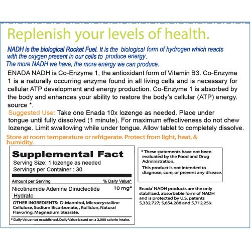 ENADA NADH — это коэнзим 1, антиоксидантная форма витамина B3. Коэнзим 1 — это фермент природного происхождения, который содержится во всех живых клетках и необходим для развития клеточной ATФ и производства энергии. Коэнзим 1 усваивается организмом и увеличивает способность восстанавливать источник энергии (АТФ) в клетках организма.