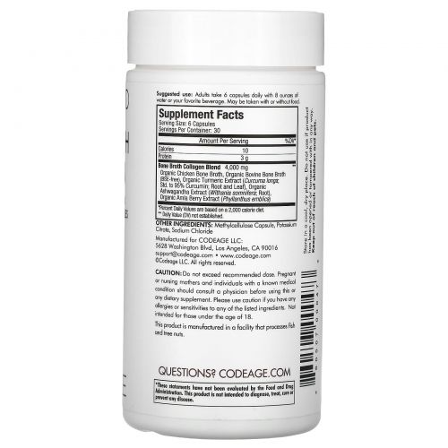 Описание товара Codeage, Bone Broth Collagen, 180 капсул