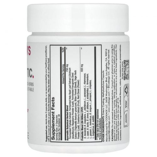 Описание товара Codeage, Для пищеварения, пробиотик для женщин, 50 млрд КОЕ, 60 капсул