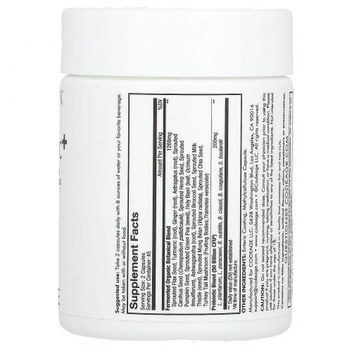 | Ферментированная органическая растительная смесь Проросшие семена льна, куркума (корень), имбирь (корень), астрагал (корень), проросшие семена канихуа (Chenopodium pallidicaule), проросшие семена конопли, проросшие семена тыквы, проросшие семена зеленого горошка, базилик священный (листья; Ocimum tenuiflorum) , Ашваганда (корень), проросшие семена брокколи, проросшие семена расторопши (семена), проросшие бобы мунг (Vigna radiata), проросшие семена чиа, гриб из хвоста индейки (Trametes versicolor) | 1268 мг | ** |