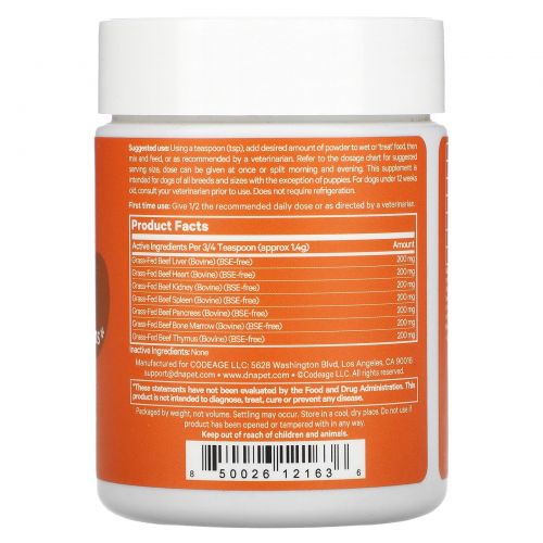 Описание товара Codeage, DNA PET, Happy Healthy Organs, для собак, 85 г (3 унции)