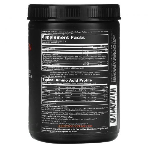 Описание товара Codeage, Гидролизованные мультиколлагеновые пептиды, без добавок, 300 г (10,58 унции)
