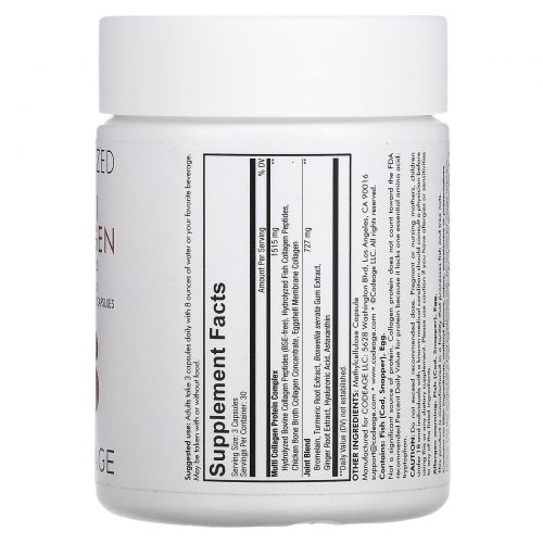 Описание товара CodeAge, Гидролизованный мультиколлагеновый протеин + смесь для суставов, 90 капсул