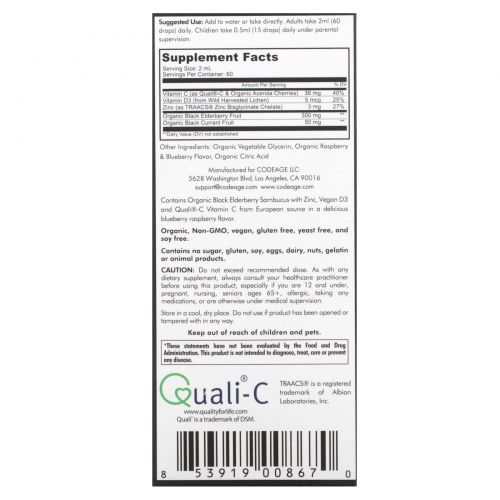 Описание товара Codeage, Vitamins, бузина и иммунный комплекс, голубика и малина, 120 мл (4 жидк. Унции)