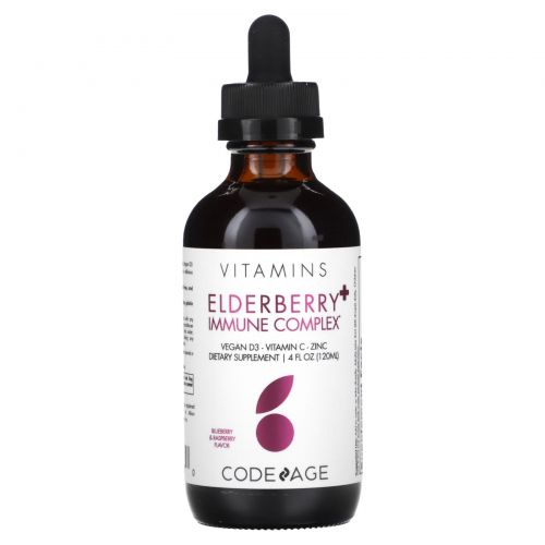 Codeage, Vitamins, бузина и иммунный комплекс, голубика и малина, 120 мл (4 жидк. Унции)