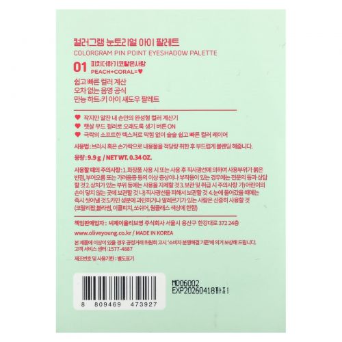 Описание товара Colorgram, палитра теней для век, оттенок 01 персик + коралл, 9,9 г (0,34 унции)
