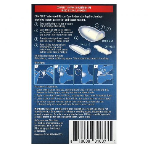 Compeed, улучшенный уход в блистерах, разный размер, 6 тюбиков с гелем