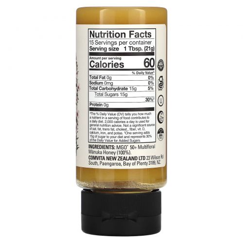 Описание товара Comvita, Raw, многоцветковый мед манука, MGO 50+, 312 г (11 унций)