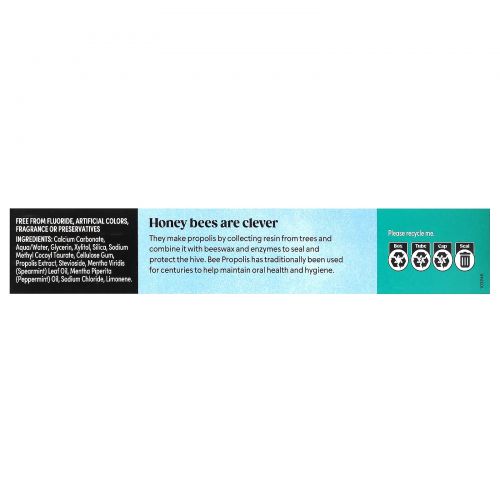 Другие ИнгредиентыКарбонат кальция, вода/вода, глицерин, ксилитол, диоксид кремния, натрия метил кокоил таурат, целлюлозная камедь, экстракт прополиса, стевиозид, масло листьев мяты колосистой (Mentha viridis), масло перечной мяты (Mentha piperita), хлорид натрия, лимонен.
