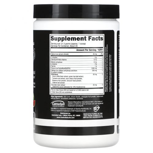 цитруллин и бета-аланин для повышения накачки и выносливости, тирозин и кофеин для энергии и концентрации, таурин и глицерин для улучшения гидратации, бетаин для здоровья печени и улучшения состава тела, а также запатентованная смесь S7, которая помогает спортсмену поставлять больше кислорода, топливо и другие важные питательные вещества для тренировки мышц во время тренировок. Все это в упаковке без креатина.