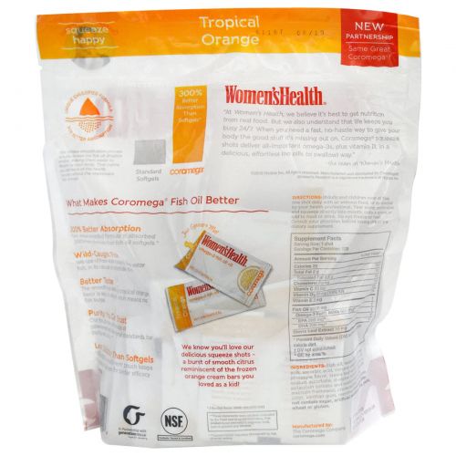 Описание товара Coromega, Омега-3, тропические фрукты +D, тропический апельсин, 120 пакетов, 2,5 г каждый