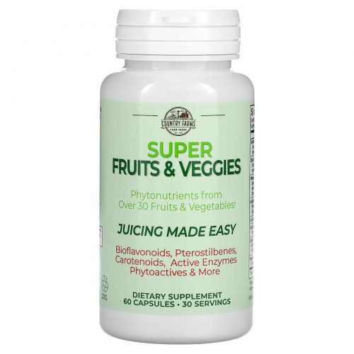 Описание товара Country Farms, Super Fruit & Veggies, Natural Fruit & Vegetable Formula, 60 Capsules