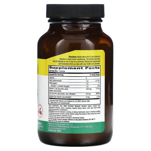 Описание товара Country Life, Цинк в таблетках с добавлением витамина С, со вкусом вишни, 60 таблеток