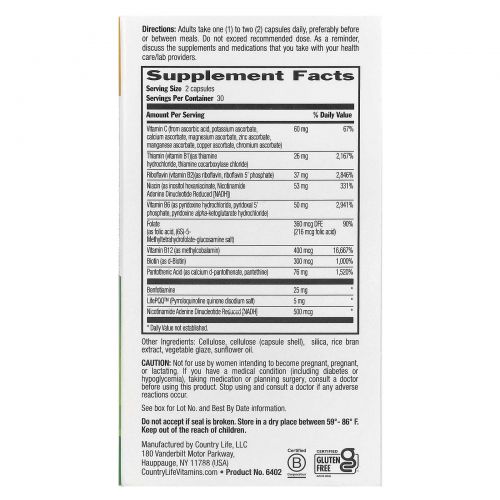 Описание товара Country Life, Коферментный комплекс витаминов группы B, улучшенная формула, 60 растительных капсул