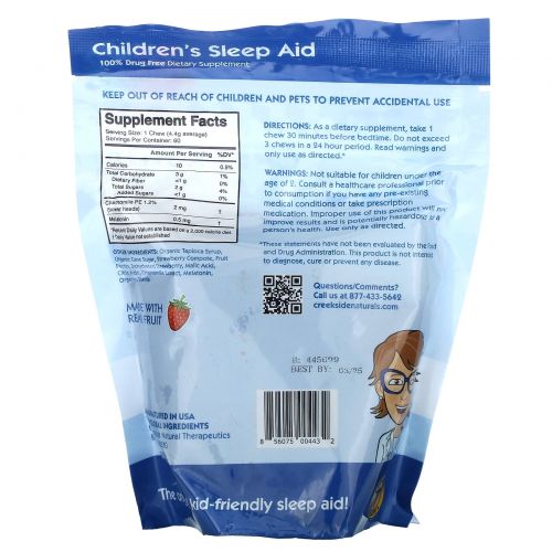 Описание товара Creekside Natural Therapeutics, Children's Sleep Aid, клубника, 60 жевательных фруктов, 9,3 унции