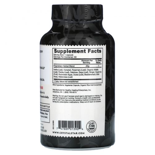 | Крапива (Листья), Органическая люцерна (Лист) и (Ствол), Петрушка (Root), Розмари (Лист), Мудрец (Лист), Хвощ (Herb), Oatstraw (Herb), Имбирь (Корень), Cayenne Pepper (Fruit) , Kelp Powder, Dulse (Leaf), Порошок мочевого пузыря, ирландский мох (растение), кресс-салат (трава) | ||