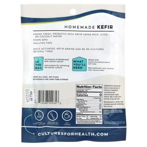 Описание товара Cultures for Health, Kefir Powdered Starter, 0.2 oz (5.6 g)