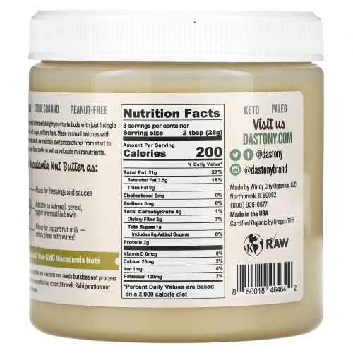 Описание товара Dastony, Macadamia Nut Butter, 8 oz (227 g)