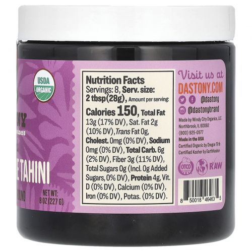 Описание товара Dastony, тахини с обжаренным черным кунжутом, для мягкости, 227 г (8 унций)